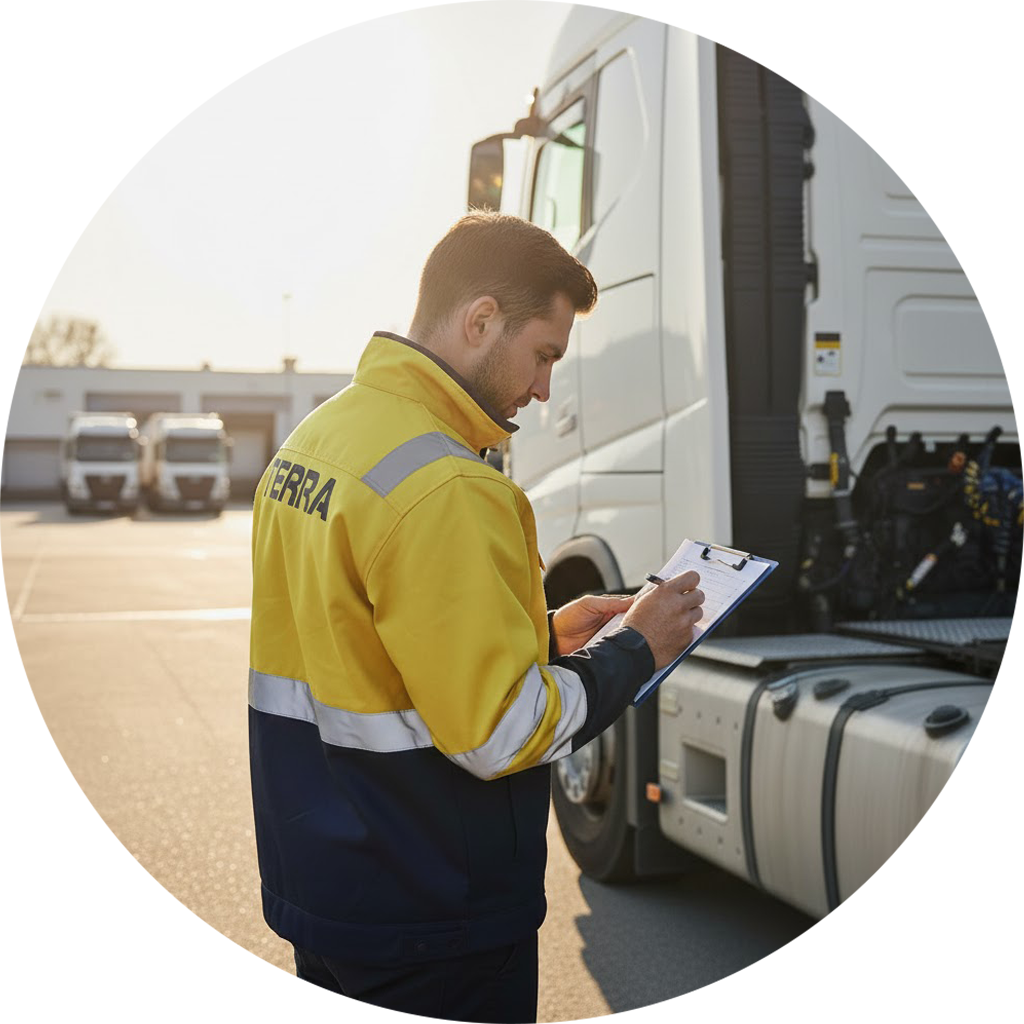 Terra Transport olarak araçların alımı ve teslimi süreci boyunca denetim ve kontrollerimiz devam etmekte olup, Terra Servis Kontrol departmanımızın gezici ekipleri tarafından denetlenmektedir. Bu denetim hem hizmet kalitemin devamı açısından hem de yolda meydana gelebilecek aksaklıklara hızlı çözüm üretebilmemize olanak sağlamaktadır. Konusunda deneyimli Terra Servis personelimiz evrak yeterliliği, şoför ekibimizin davranışları, trafik kurallarına riayet edilmesi, aracın güvenliği. kaza ve arıza durumlarında ivedilikle müdahale hususlarında siz değerli müşterilerimiz adına hizmet vermektedirler.